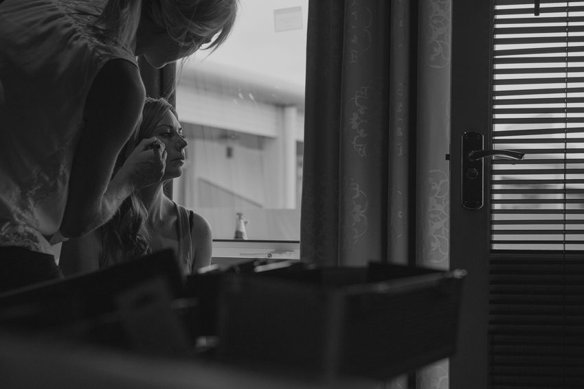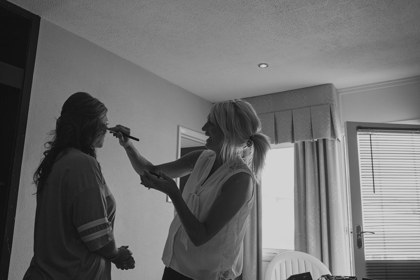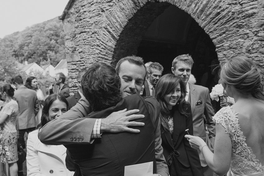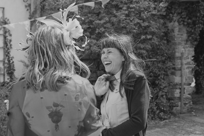 Ash Barton Manor Wedding Photography by London Wedding Photographer Mat Quake. I didn’t meet Tom and Katie until the big day, it’s rare to not meet couples before hand but it’s not always practical and I guess you get a good feel for someone over the telephone. Their wedding day took me to North Devon, a fab venue in the name of Ash Barton Manor, a relaxed and informal setting where you’re able to simply take over the house, barn and grounds for the duration of your stay. I met Katie in a local hotel for some getting ready photographs before the church service in nearby Braunton. Whilst the rain stayed away, it was pretty windy, which is fine if you’re a hungry wind turbine but not ideal for a bride’s hair in open spaces. I kept the informal bride and groom shots of them both in sheltered spaces, which have leant themselves as nice backdrops. They did both brave the windswept open wheat field in front of the wind turbines, thanks to them for that. I would never force a couple into weather or pose they weren’t comfortable doing but their contentment has resulted in a lovely shot, combining a passionate kiss with the clash of nature’s rolling hills and wind power technology. Wishing them both lots of future happiness, I hope you enjoy my documentary take on the day.